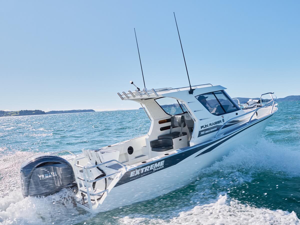 Extreme 745 Walk Around - with full access right around the boat, massive fishing room, plenty of shelter, a cabin large enough for overnighting, and a 250hp Yamaha outboard this is the ultimate 7.4m offshore fishing boat.